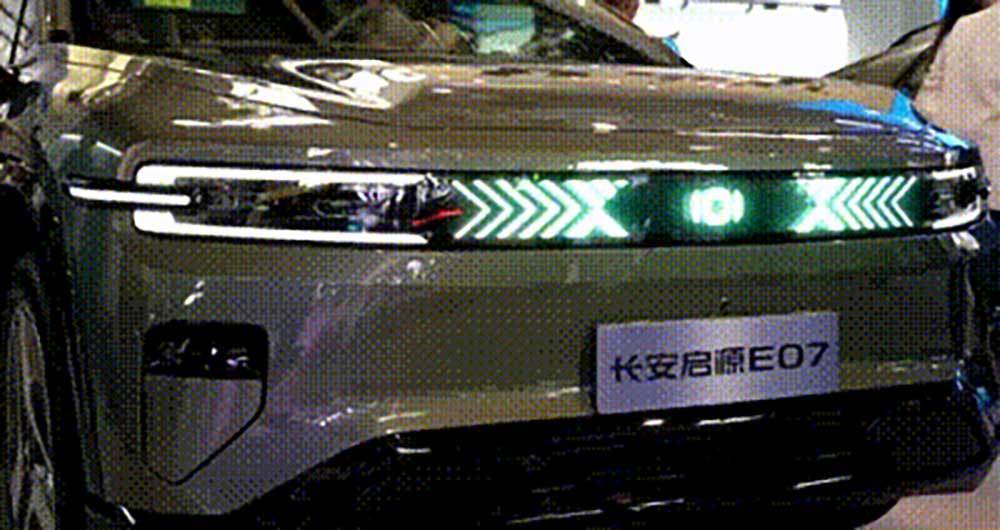 重庆合川工厂现量产的长安启源E07前贯穿灯